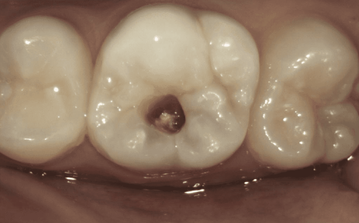 Visible Damage: Noticeable holes, dark spots or rough edges on the tooth surface.